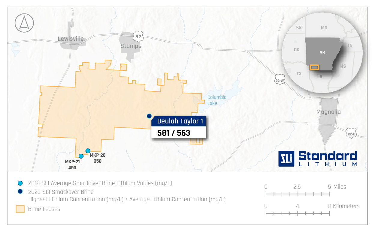 EL DORADO, Ark., May 23, 2023 (GLOBE NEWSWIRE) -- Standard Lithium Ltd. (“Standard Lithium” or the “Company”) (TSXV: SLI) (NYSE American: SLI) (FRA: S5L), a leading near-commercial lithium company, announced that, as part of the resource definition work at its South West Arkansas Project (see news release dated 20th March 2023) it has sampled, to the best of its knowledge, the highest confirmed lithium grade brine in Arkansas, with a grade of 581 mg/L. These sampling data follow similar high-grade results from the Company’s resources in Texas (see news release dated 28th March 2023).
